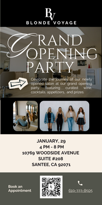 Guests will enjoy light refreshments, networking, and a chance to explore the space while celebrating Blonde Voyage’s exciting new chapter in Santee.